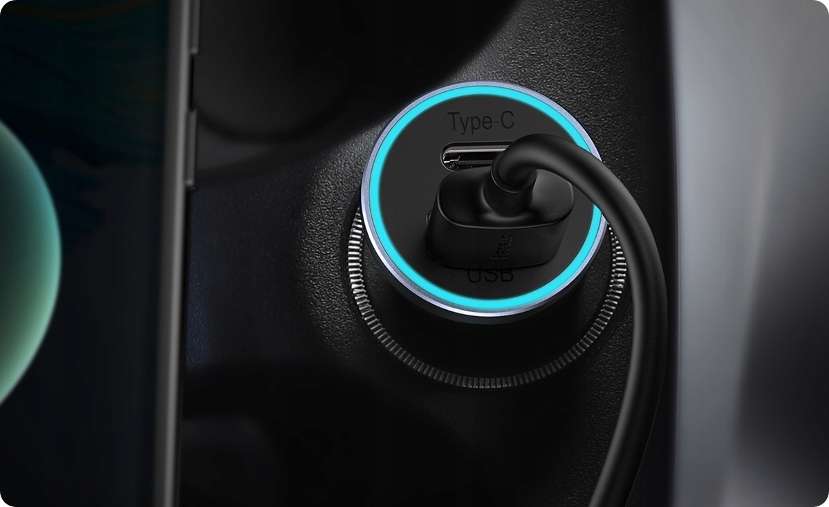Kompaktowy Rozmiar i Estetyczny Design: Ładowarka jest nie tylko praktyczna, ale również elegancko zaprojektowana, co sprawia, że doskonale komponuje się z wnętrzem każdego pojazdu.