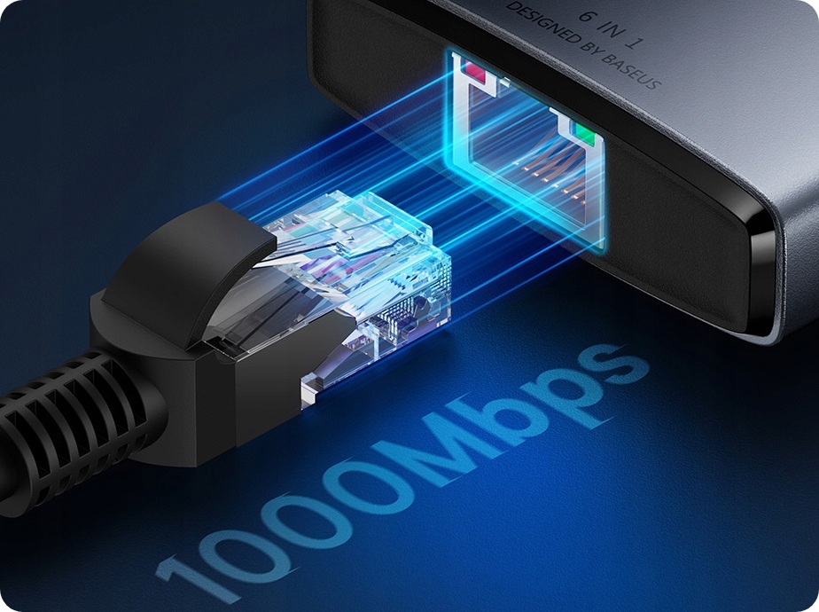 Wszechstronność 6-w-1: Hub oferuje 6 dodatkowych portów, które rozszerzają możliwości Twojego urządzenia, w tym HDMI, USB-C, USB-A, RJ45.