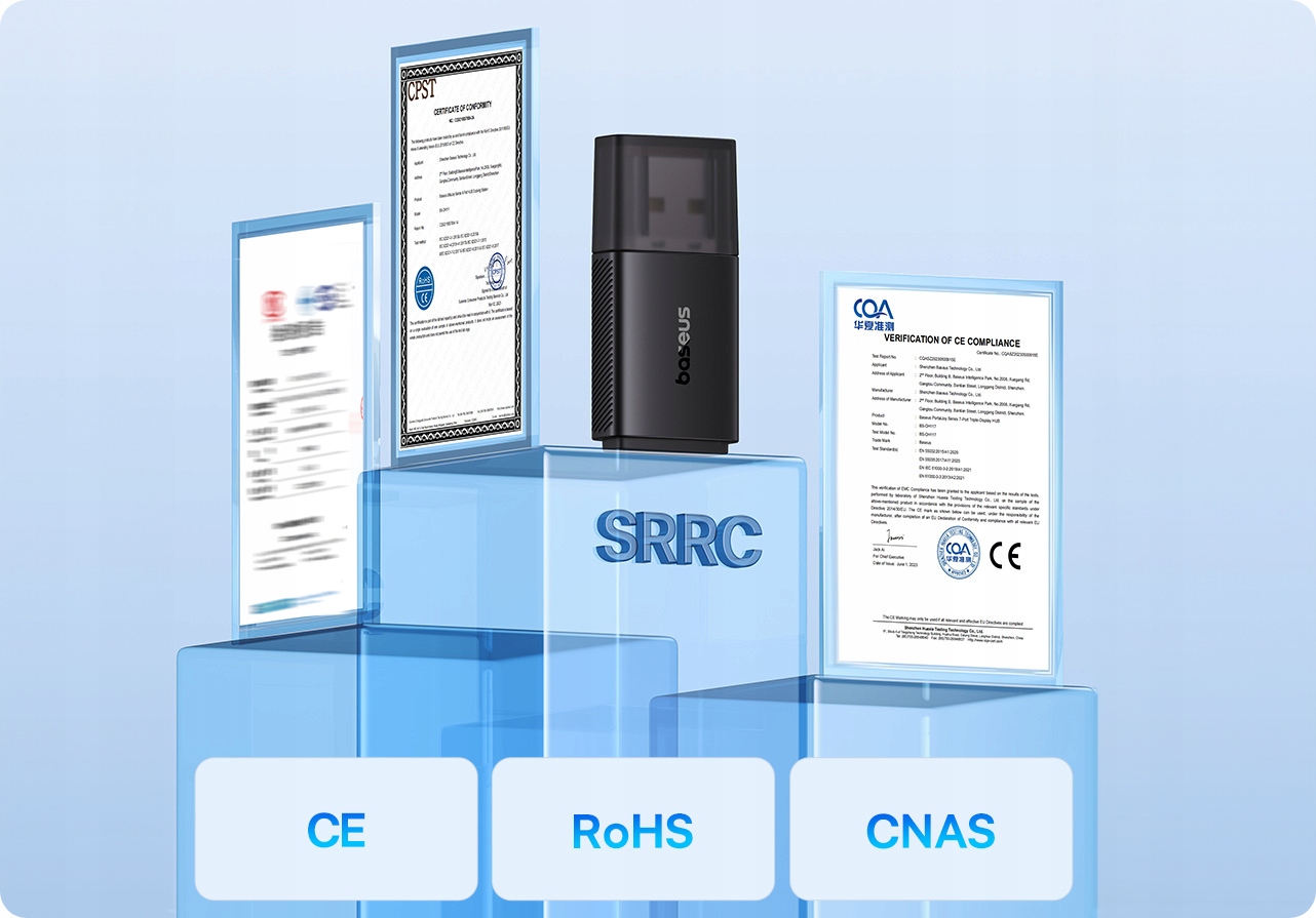 Dzięki zastosowaniu chipa Realtek, adapter zapewnia stabilną pracę, automatycznie dostosowując parametry pracy, aby zapobiec przegrzewaniu i utrzymać optymalną wydajność. Spełnia międzynarodowe normy jakości, potwierdzone certyfikatami CE, SRRC, EoHS oraz CNAS, co gwarantuje bezpieczne i niezawodne działanie.