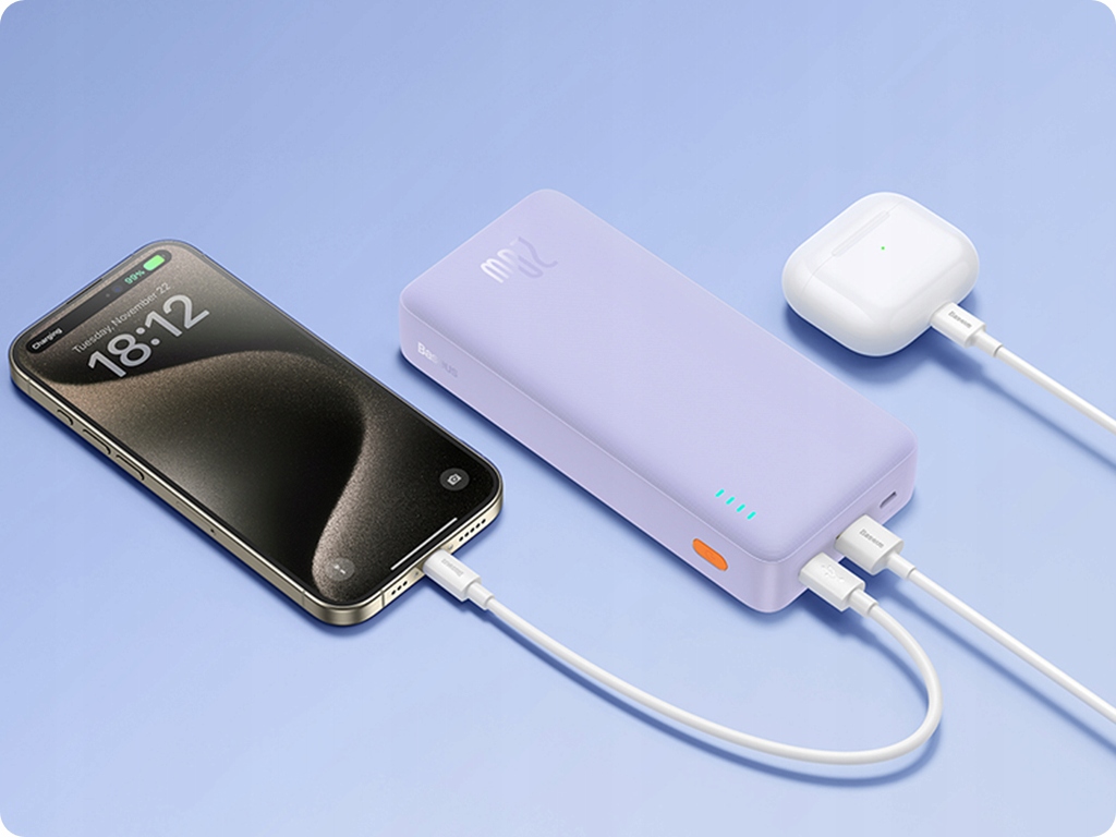 Dwa porty (USB-C i USB) umożliwiają jednoczesne ładowanie dwóch urządzeń, oszczędzając Twój czas. Kompaktowy, lekki i zgodny z przepisami dotyczącymi podróży lotniczych, to idealny towarzysz w każdej sytuacji. Dodatkowo, wskaźnik LED informuje o poziomie naładowania.