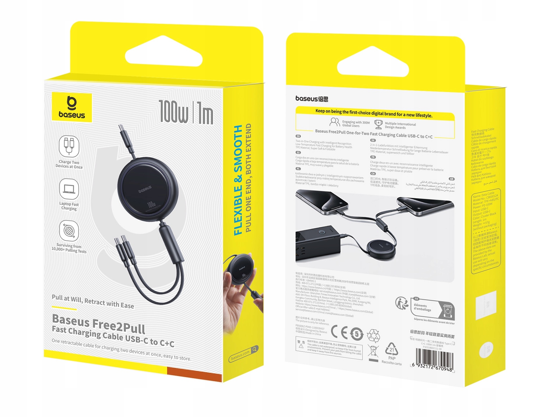 Poznaj wygodę ładowania z super szybkim kablem Baseus Free2Pull. Wyposażony w technologię PD 100W Ultra Fast Charging, umożliwia ładowanie dwóch urządzeń jednocześnie. Dzięki innowacyjnej funkcji retrakcji, możesz dostosować długość kabla do swoich potrzeb, osiągając długość od 55 cm do 1 m. Jego wytrzymały materiał TPE zapewnia długotrwałe użytkowanie bez plątania.