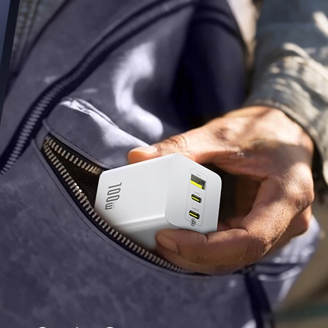 - Kompaktowy rozmiar – aż 43% mniejsza niż standardowe ładowarki 100W, idealna w podróży.