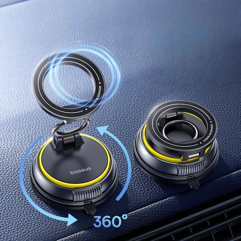 Uchwyt Baseus PrimeTrip VC2 Flex posiada innowacyjną przyssawkę próżniową, która blokuje się po obrocie. Dzięki temu mocowanie jest odporne na gwałtowne manewry, hamowanie czy jazdę po nierównych drogach.