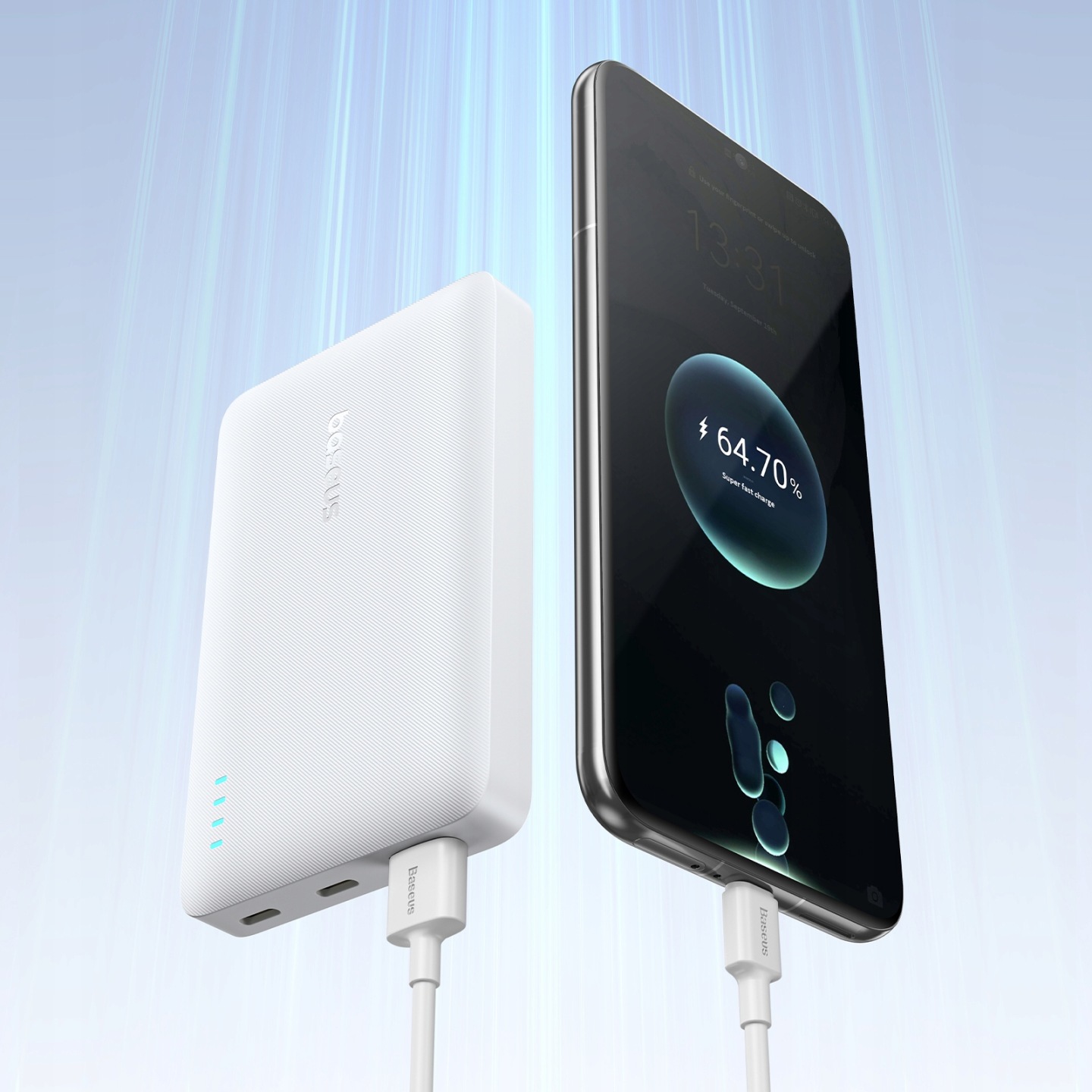 Powerbank Baseus oferuje moc wyjściową do 22,5 W, co pozwala na sprawne ładowanie nowoczesnych smartfonów oraz innych urządzeń mobilnych. Dzięki obsłudze szybkiego ładowania skraca czas uzupełniania energii i sprawdza się wtedy, gdy liczy się każda chwila.