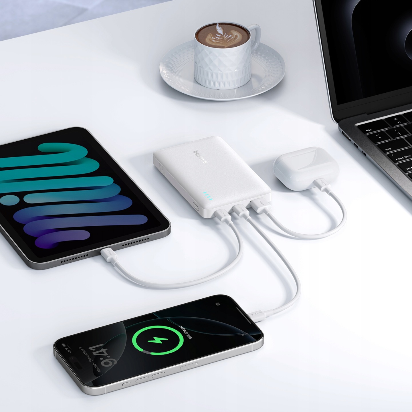 Kompaktowy powerbank Baseus o pojemności 10000 mAh, zaprojektowany z myślą o codziennym użytkowaniu. Obsługuje szybkie ładowanie o mocy do 22,5 W, dzięki czemu sprawnie zasila smartfony i inne urządzenia mobilne. Smukła i lekka konstrukcja sprawia, że bez problemu mieści się w kieszeni lub torebce, a uniwersalne porty USB-C oraz USB-A zapewniają szeroką kompatybilność z popularnymi urządzeniami. Idealny jako zapasowe źródło energii na co dzień i w podróży.
